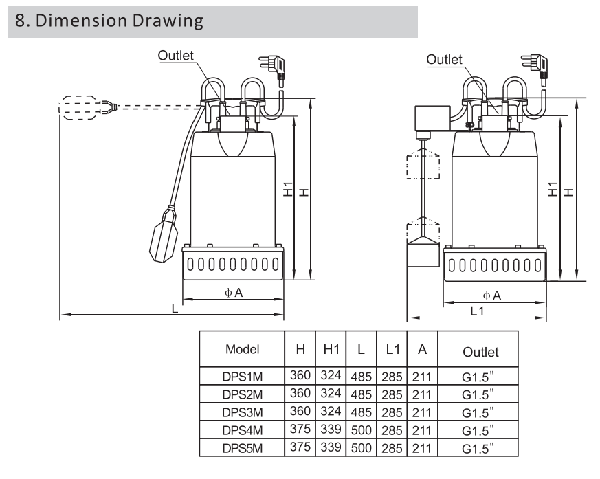 Open impeller,suit to ≤10mm solid particle;