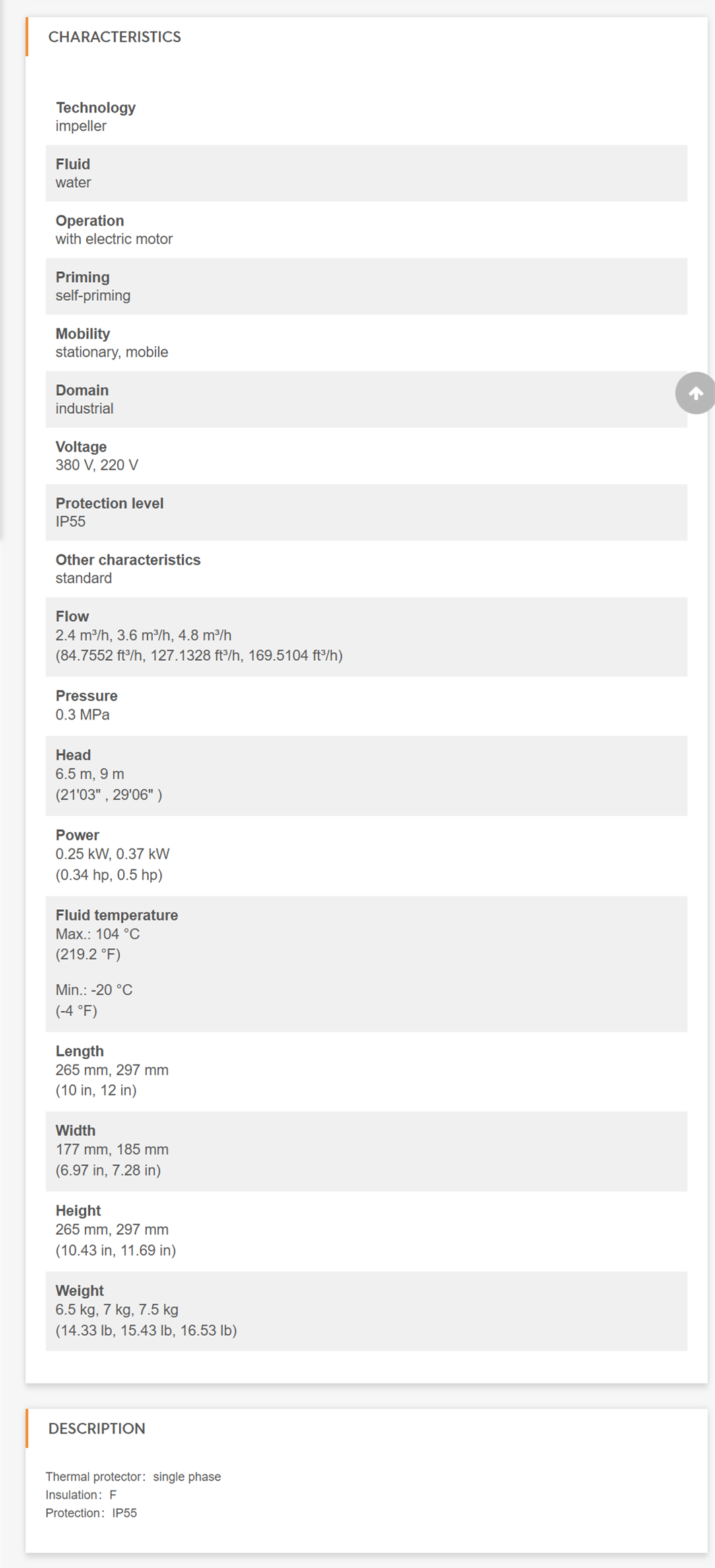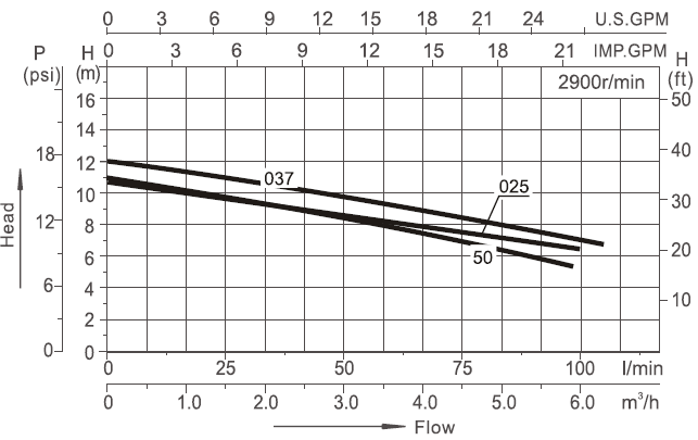 2.4 m³/h, 3.6 m³/h, 4.8 m³/h