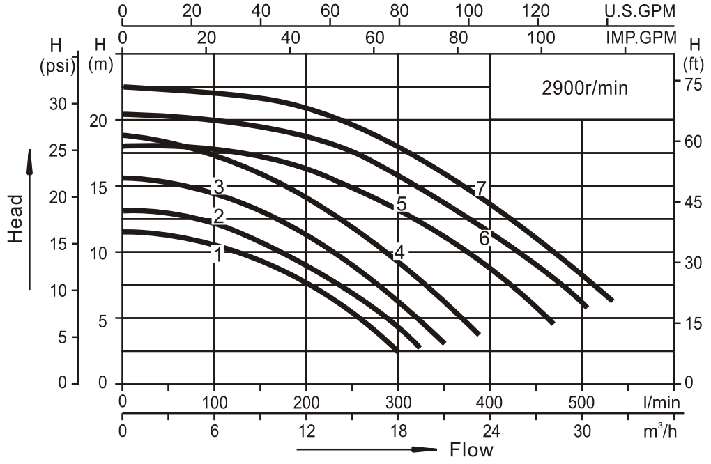 Flow rate up to 530L/min※ Head up to 22.5m